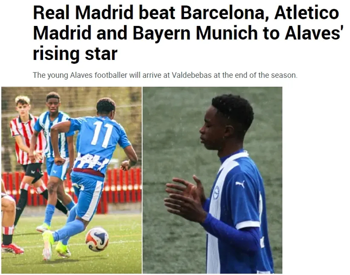 奥科里已经多次入选过西班牙u16,这名左后卫将在本赛季结束后加入皇马青训,他被认为是阿拉维斯青训营中最有天赋的年轻人之一。